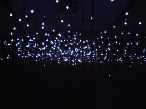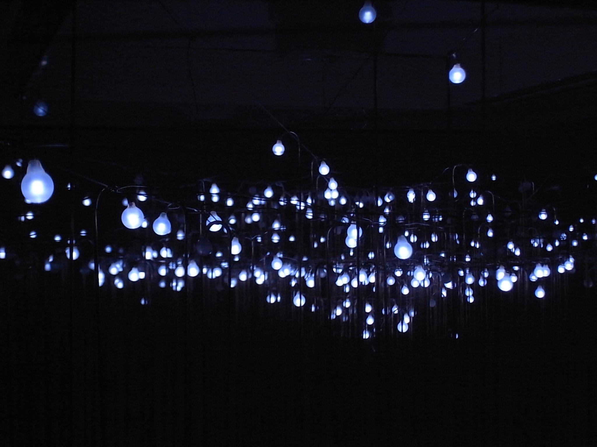 フック状のLEDを上部のワイヤーに掛け